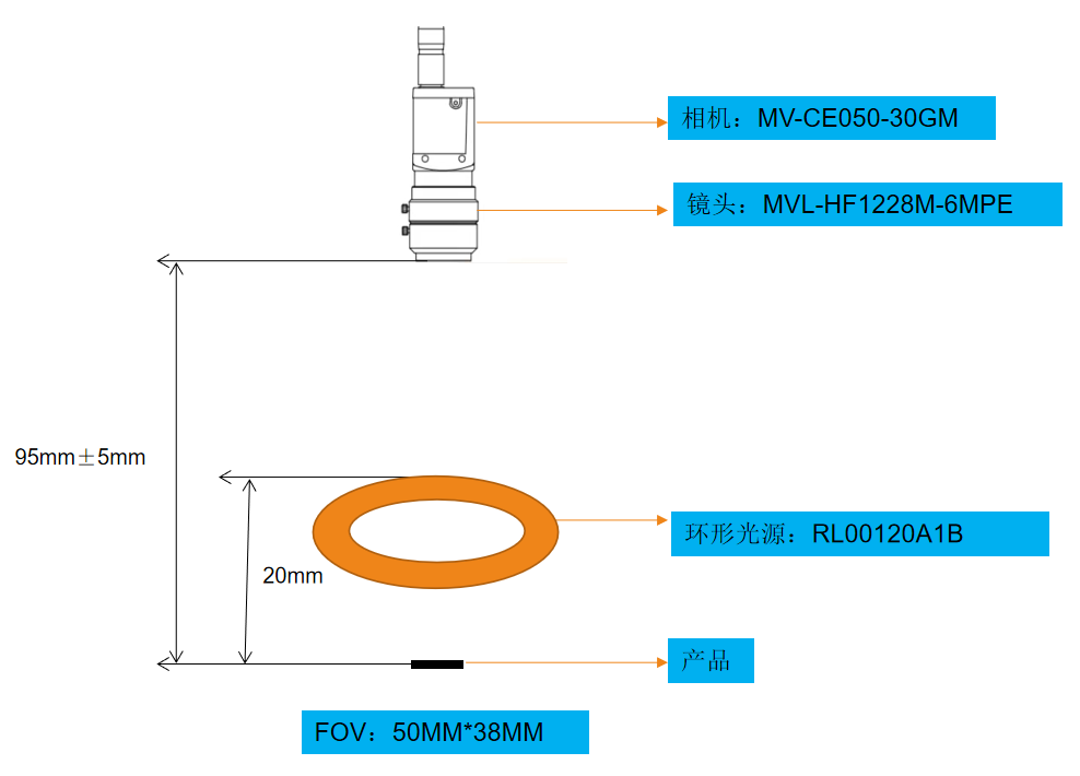 2.客戶提供樣品,根據(jù)樣品的形狀、大小、輪廓特征等,選出相機(jī)、鏡頭硬件,得出工作距和視野大小