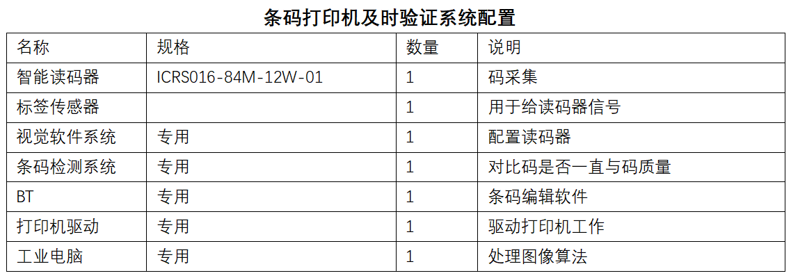 條碼打印及檢測系統(tǒng):包含二維碼打印、打印檢測并信號傳輸功能模塊。
